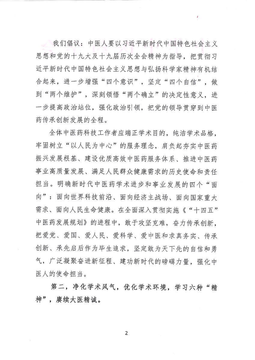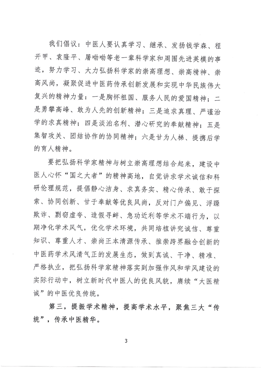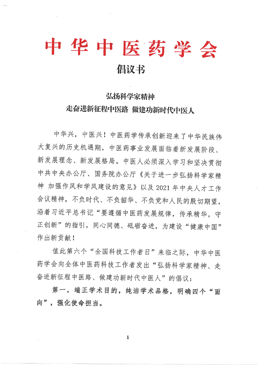 倡议书——弘扬科学家精神,走奋进新征程中医路 做建功新时代中医人